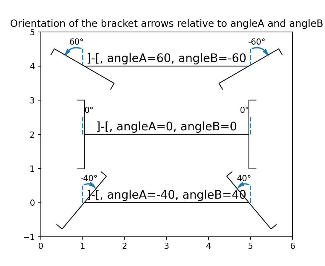 "|-|, widthA=20, widthB=20, angleA=45, angleB=45" == ArrowStyle("|-|, widthA=20, widthB=20, angleA=45, angleB=45") == ArrowStyle("|-|", widthA=20, widthB=20, angleA=45, angleB=45) == ArrowStyle.BarAB(widthA=20, widthB=20, angleA=45, angleB=45)