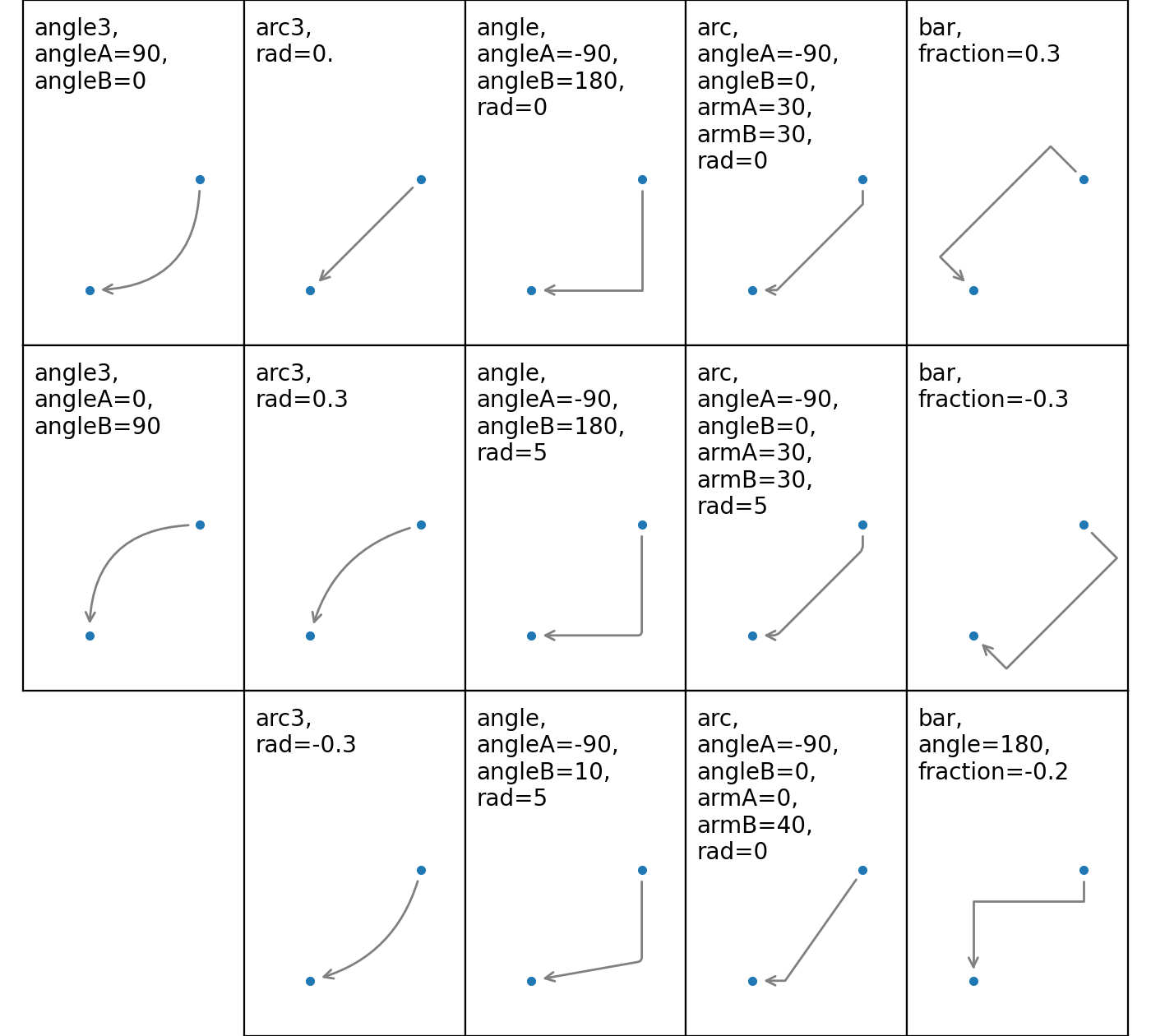 "arc3, rad=1" == ConnectionStyle("arc3, rad=1") == ConnectionStyle("arc3", rad=1) == ConnectionStyle.Arc3(rad=1)
